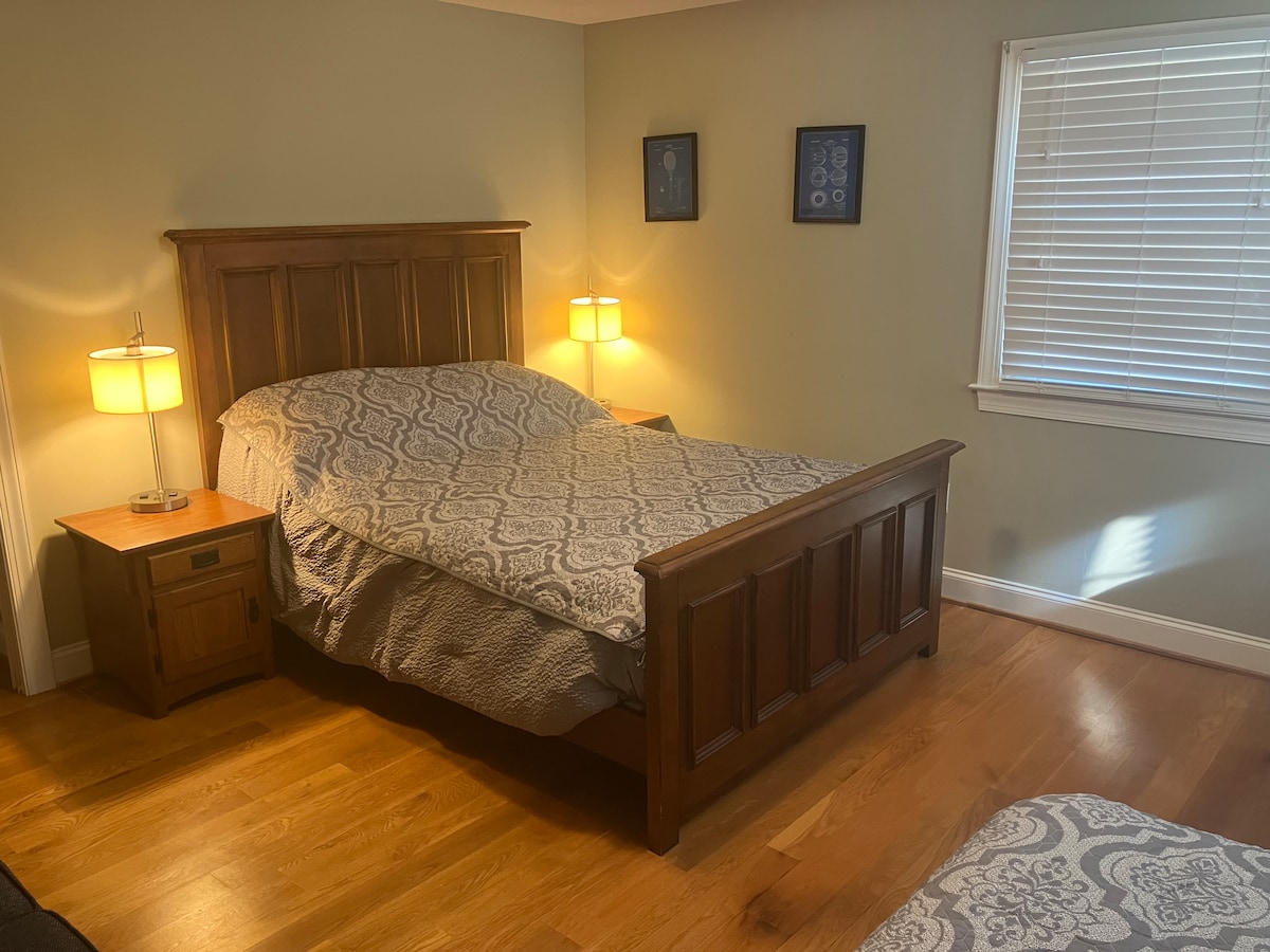 Arte moderna, leve e arejada, animais de estimação bem-vindos com taxa Quarto principal grande com cama queen size e um quarto de tamanho menor com cama completa, com duas camas de solteiro que se puxam para fora sob cada cama. 2 quartos no total, sala de estar, sala de jantar, banheiro e lavanderia no porão. Cozinha completa com tudo o que você precisa Caminhe no chuveiro grande com assento. Grande quintal totalmente cercado Escapada tranquila, muito tranquila, mas perto de comida e compras. Acesso à mesa de piquenique em frente ao riacho e fogueira na estrada abaixo da casa, a uma curta caminhada.