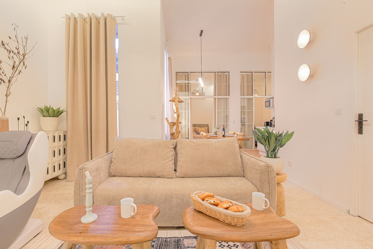 O vestiário é um apartamento de cobertura, telhado com comodidades de luxo. Você pode desfrutar de 60m2 para até 3 pessoas (a terceira cama é um sofá-cama extra para 1 pessoa da Maison du Monde). O alojamento é a combinação perfeita de conforto e tradição: madeira exposta, ar condicionado, fibra ótica e canais de TV, cozinha totalmente equipada, decoração escolhida, exposição de obras de arte, terraço, varanda, estacionamento privativo por uma taxa adicional.