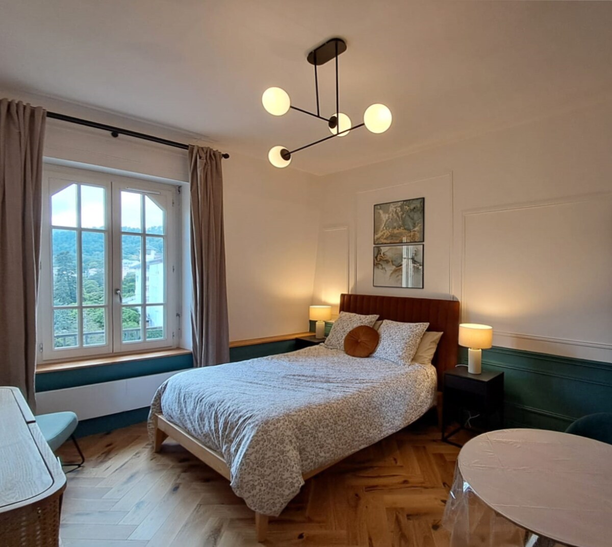 Estúdio moderno e totalmente renovado, aninhado no coração do centro da cidade de Riom. Localizado no piso térreo, este espaço acolhedor fica a poucos passos de todas as lojas, bares e lojas essenciais, todos acessíveis a uma caminhada de 3 minutos. A área de estar está equipada com uma televisão, ar condicionado e uma mesa de jantar para quatro pessoas, criando um ambiente acolhedor e descontraído e com uma cama de casal 140x190, garantindo uma noite de sono tranquila. A cozinha e o banheiro, ambos totalmente equipados, atenderão a todas as suas necessidades! Estacionamento:sim!