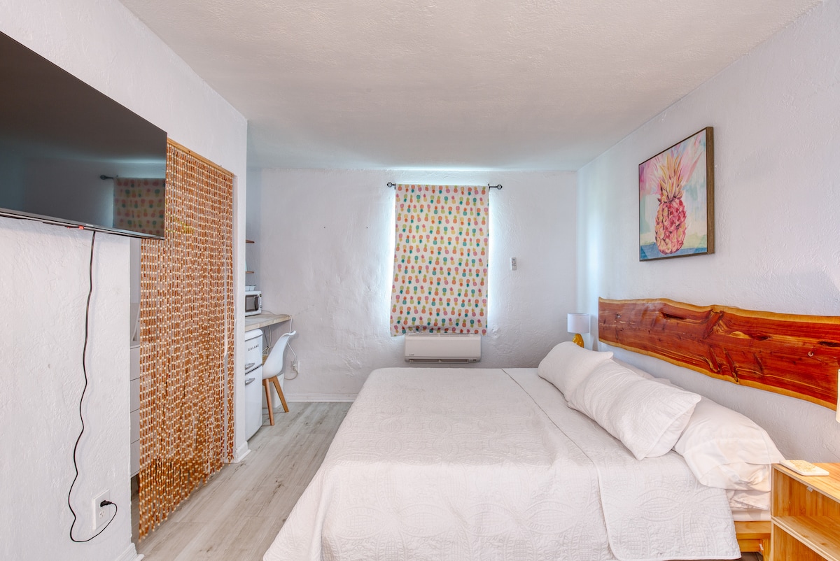 Bem-vindo ao Blue Mist Motel, seu refúgio aconchegante aninhado no coração de Daytona Beach Shores. Esta encantadora suíte com banheiro privativo é perfeita para casais ou viajantes solitários que procuram um retiro sereno à beira-mar. Desfrute de confortos modernos, incluindo itens básicos, unidades de lavanderia pagas, Internet sem fio de alta velocidade e uma cozinha totalmente equipada com fogão. Experimente o melhor de Daytona Beach Shores conosco! Disponível para estadias de curta e longa duração. Entre em contato conosco para saber mais!
