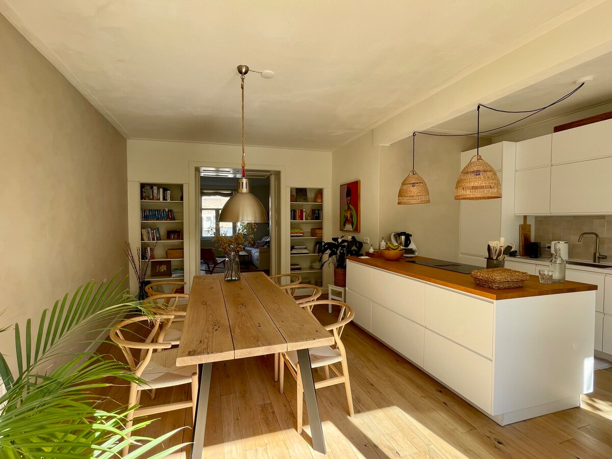 Seja bem-vindo em nossa bela casa recém reformada. A sala de estar, mobiliada com design escandinavo, está equipada com mesa de refeições, sofá, fogão e TV, e a cozinha adjacente tem eletrodomésticos modernos (por exemplo, cafeteira Jura). O espaçoso quarto tem uma mesa de trabalho e se conecta ao vestiário com guarda-roupas. De lá você entra no banheiro moderno. Nossa casa fica a 10 minutos de bicicleta do Jordaan, facilitando o aproveitamento do charme de Amsterdã.