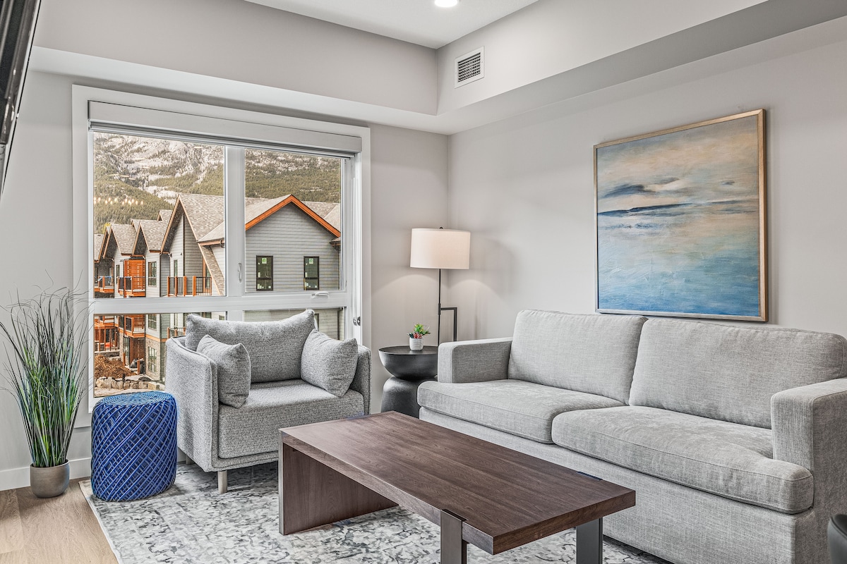 Bem-vindo à nossa nova unidade de 1 quarto em Dead Man's Flats, Alberta, a apenas 6 minutos de Canmore. Este retiro de design de bom gosto oferece vistas deslumbrantes para a montanha a partir do deck privativo e mobiliário de luxo em todos os lugares. Durma profundamente em nosso colchão de alta qualidade, acordando revigorado para sua próxima aventura. A cozinha totalmente equipada e churrasqueira no pátio tornam o jantar uma alegria. Após um dia de exploração, relaxe na piscina do resort e na banheira de hidromassagem. Reserve agora para uma escapada inesquecível na montanha!