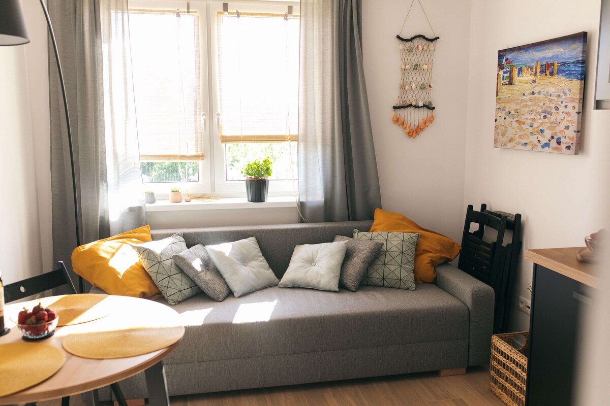 Apartamento aconchegante no centro de Leba! Bem-vindo ao nosso confortável apartamento no coração de Łeba! Localização perfeita – a poucos minutos a pé das praias A e B e de um canal pitoresco. É uma ótima escolha para férias, uma escapadela em família ou uma escapadela romântica. -Segundo andar com varanda -1 quarto com cama confortável - Salão que pode ser um quarto extra -Uma cozinha totalmente equipada - Wi-Fi de velocidade e TV - Lojas, restaurantes, cafés ao seu alcance