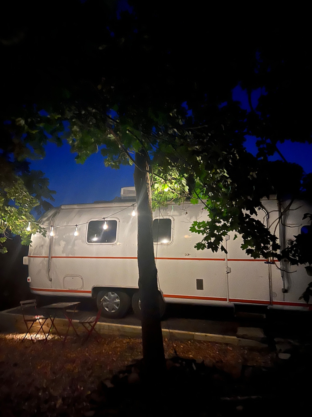 Venha desfrutar do conforto de um acampamento glamouroso em nosso Airstream Land Yacht vintage de 1975 que foi totalmente remodelado. Dentro há um colchão de espuma de memória de tamanho completo para dormir, um banheiro que é mais espaçoso do que o acampamento médio, uma cozinha com um cooktop de 2 bocas, forno de torradeira e uma geladeira. Assista TV na tela plana do sofá ou no quarto. Coma na mesa de granito e aprecie a vista da fazenda. Ao ar livre, há uma cozinha, “Outhouse” e uma área de estar com uma mesa de fogo