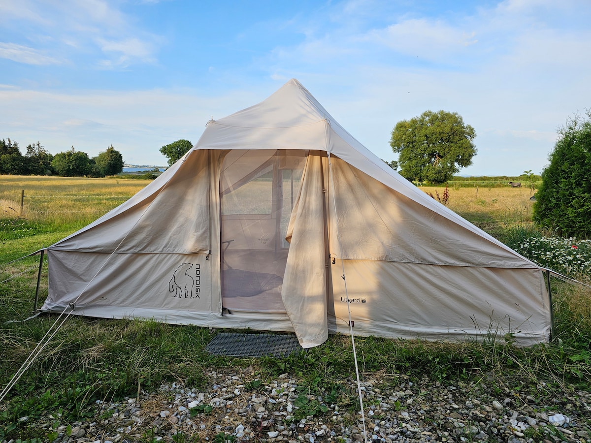 Pernoite com vista para o arquipélago de South Funen em uma grande tenda de glamping. A água estará disponível, bem como utensílios de cozinha e pratos básicos. Além disso, uma grelha a gás com gás e possibilidade de uma fogueira. É possível emprestar trangia se você não trouxer uma e for necessário ferver água. Observe que o vaso sanitário está localizado a algumas centenas de metros da tenda perto da igreja local: -) E você pode tomar um banho nas comodidades do porto.