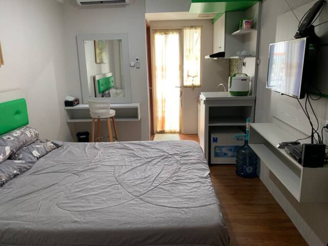 Apartamento Green Lake View Mínimo de 3 dias. Semanal (10% de desconto), Mensal (35% de desconto) Preço Diário IDR 250.000 Informações: Inclua água, Internet e eletricidade. Localização: Apartamento Green Lake View. Jl. Dewi Sartika No 28 Ciputat, Tangerang Selatan Torre: E Piso: 18º Tipo de unidade: Apartamento estúdio Banheiro: 1 Vista: Vista para a piscina/de frente para o nascer do sol Tamanho: 22m2 Capacidade: 2 Pessoas Eletricidade: 2200 WATT