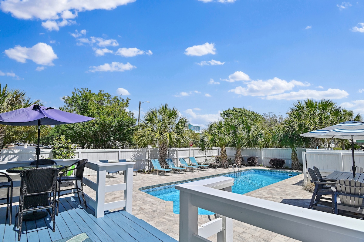 Coração de Destin com piscina + acesso à praia a pé!