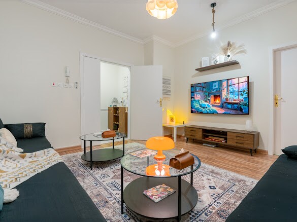Estúdio aconchegante| Cama de casal, sala de estar com TV de 65", Wi-Fi