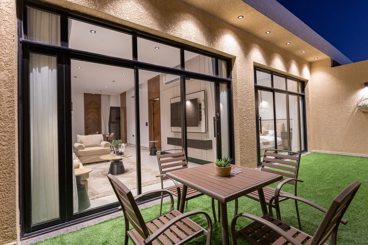 Apartamento elegante com serviços de hotel disponíveis - Serviço de hospitalidade: adicionar chá - café - açúcar - água - Serviço de saúde: xampu - salper - sabão - - lenços umedecidos - knights e pasta - Serviço de internet grátis. - Auto-entrada -Estacionamento privativo - Conta de Shahid -Kitchenette Perto de supermercado, restaurante, café, lavanderia, poucos metros. Diriyah fica a cerca de 8 km de distância e o Boulevard fica a 10 km A estação de metrô 2A2 fica a cerca de 14 minutos de distância e a estação rodoviária Irqa 501 fica a cerca de 10 minutos de distância