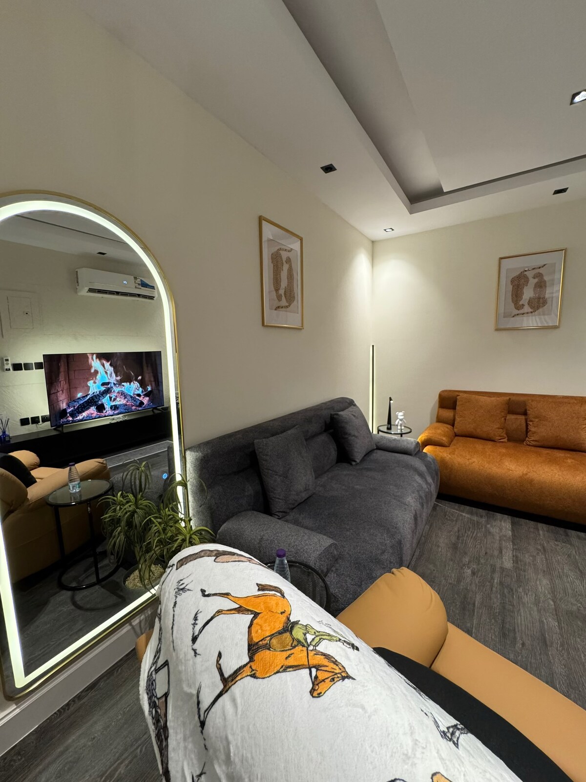 Bem-vindo ao The Mahdia Studio, uma experiência de acomodação moderna e confortável no coração de Mahdia, Riade. Um estúdio espaçoso e iluminado com um design composto por: - Uma grande área de cama e um colchão confortável garantindo um sono tranquilo. - Sessão de estar elegante com um sofá confortável, uma TV inteligente. - Canto de maquiagem clássico com espelho elegante. - Uma sessão de leitura lateral com uma cadeira moderna. - Uma pequena mesa de jantar para uso diário. - Decorações e toques simples que promovem uma sensação de relaxamento. O lugar é ideal para indivíduos ou casais que procuram uma estadia curta e confortável em um dos bairros mais desenvolvidos e tranquilos de Riade.