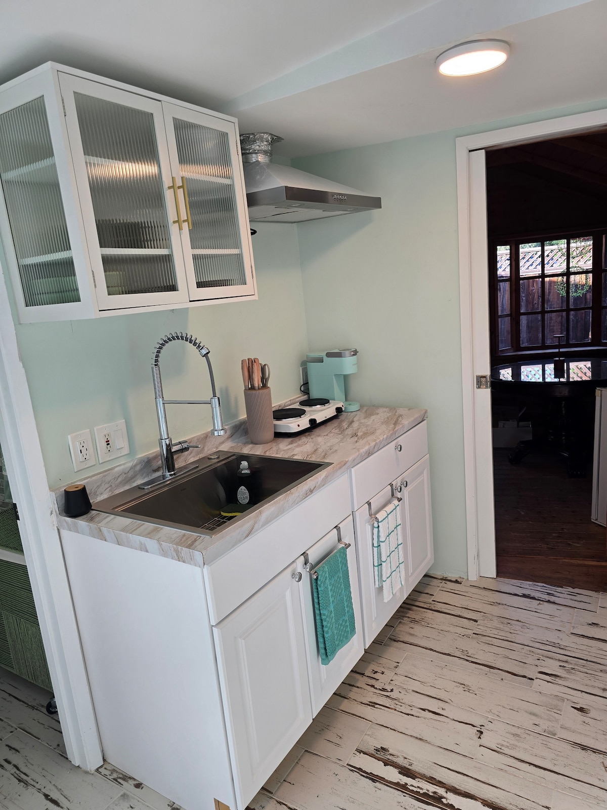 Gorgeous new guest house tucked away from it all and yet close to Downtown Walnut Creek! Walnut Creek is truly a gem of a city right out side San Francisco with cutting-edge restaurants and retail shopping. Staying in our guest house will give you a taste of the country in a organic setting of the yard. This open floor plan is bright and airy, spacious kitchen with large peninsula view for eating and socializing. Beautiful front porch perfect for warm summer nights, with views of the hills.