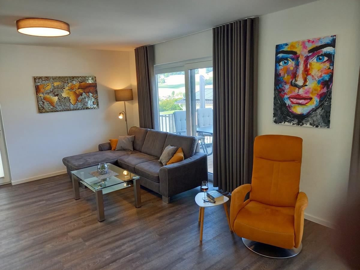 Apartamento mobiliado novo e moderno (50 m ²) com grande terraço (mobiliário de jardim) em uma localização sudoeste e toque aconchegante em um local tranquilo com entrada separada. Para 2 a 4 pessoas (sofá-cama de 3 e 4 pessoas) nos arredores de Winterberg. Perfeito para 2 pessoas, com 4 pessoas é apertado. Um cão custa 20 euros por estadia e deve ser pago no local com o imposto de turismo. Roupas de cama e toalhas estão incluídas.