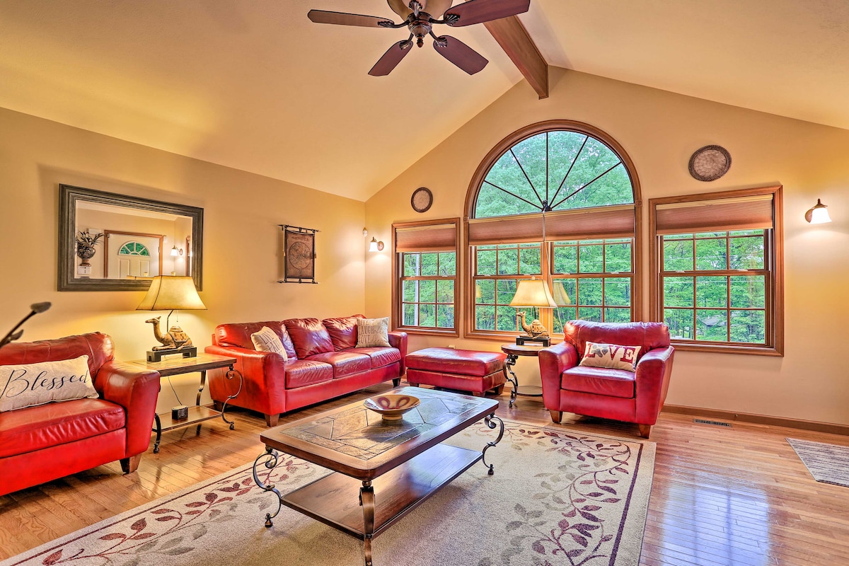 Looking for a mountain getaway? Come escape to our Poconos cottage, which seamlessly blends modern comfort and rustic charm in a private, wooded setting. Explore nearby hiking trails, indulge in local eateries, ski, fish, boat, or just embrace the tranquility of nature while sitting by the fire! You'll also enjoy fast Wi-Fi, A/C, and an indoor gel fuel fireplace.