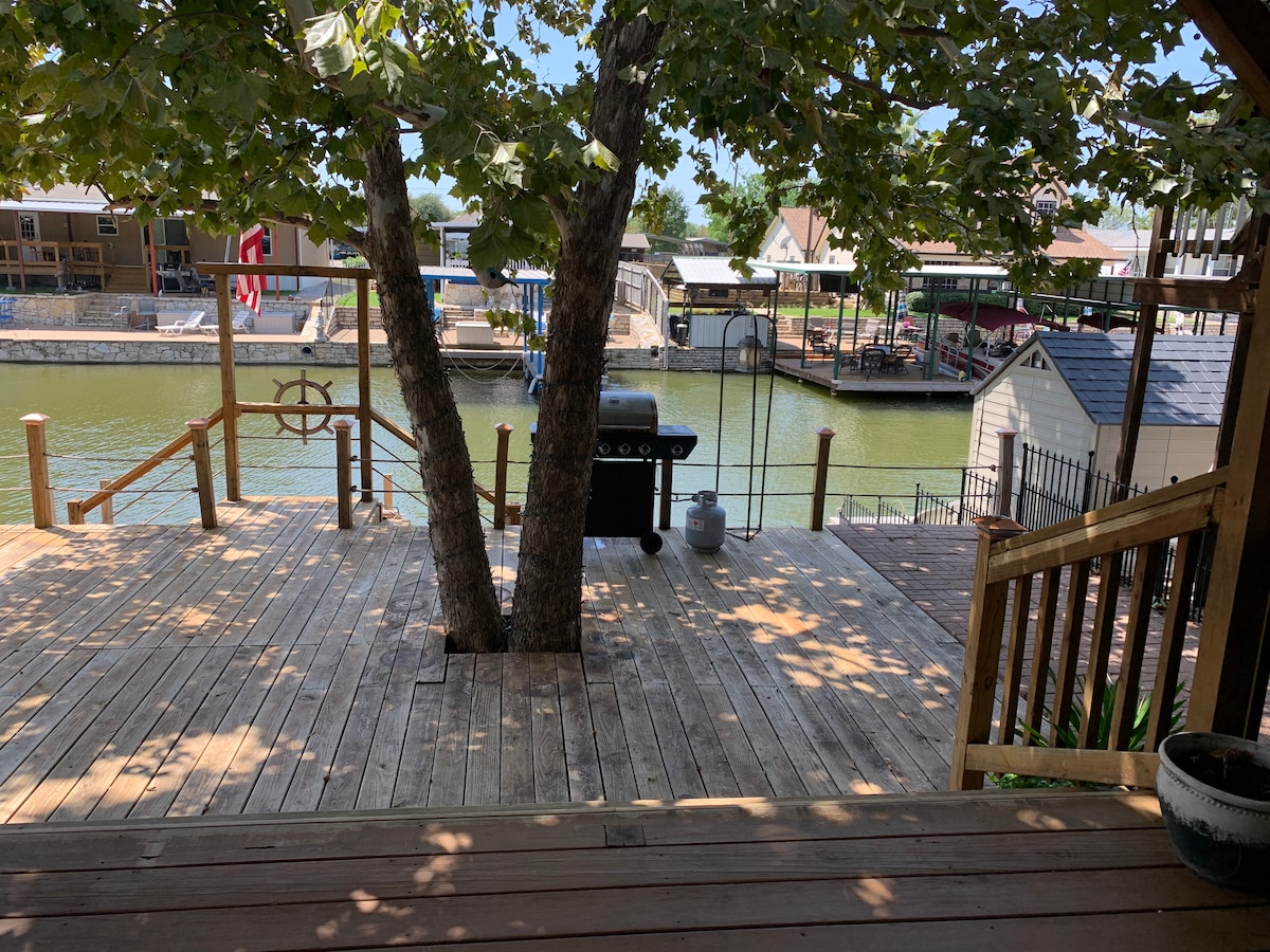 Casa nova e elegantemente decorada perto do Lago Granbury. Ótimo quarto com lareira elétrica e TV, perfeito para relaxar enquanto você olha para a área arborizada na parte de trás, onde cardeais e esquilos lhe dão as boas-vindas. Cozinha bem abastecida e jantar formal. Três quartos com cama king, queen, duas camas de solteiro e um sofá-cama extraível. Quarto para oito pessoas, mas perfeito para uma viagem de casal. Curta caminhada até o lago, áreas de piquenique e acesso ao cais de barcos. Casa privada na comunidade fechada de Canyon Creek sem vizinhos em ambos os lados.