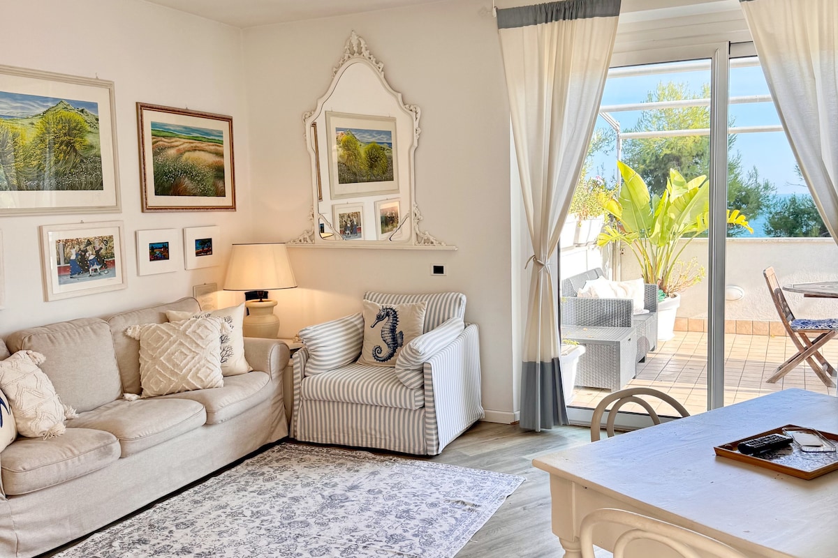 O apartamento está localizado no centro de Sirolo, no piso parcialmente subterrâneo de um novo edifício a partir do qual você pode desfrutar de uma vista magnífica do mar da Bandeira Azul na Riviera del Conero. O edifício nasceu de uma antiga estrutura totalmente demolida e reconstruída de acordo com os mais recentes e rigorosos regulamentos anti-sísmicos. É composto por uma grande sala de estar e cozinha com sofá-cama, quarto de casal, pequeno quarto com dois beliches, banheiro, pequeno pátio ao ar livre. Superfície interna: 56 m²