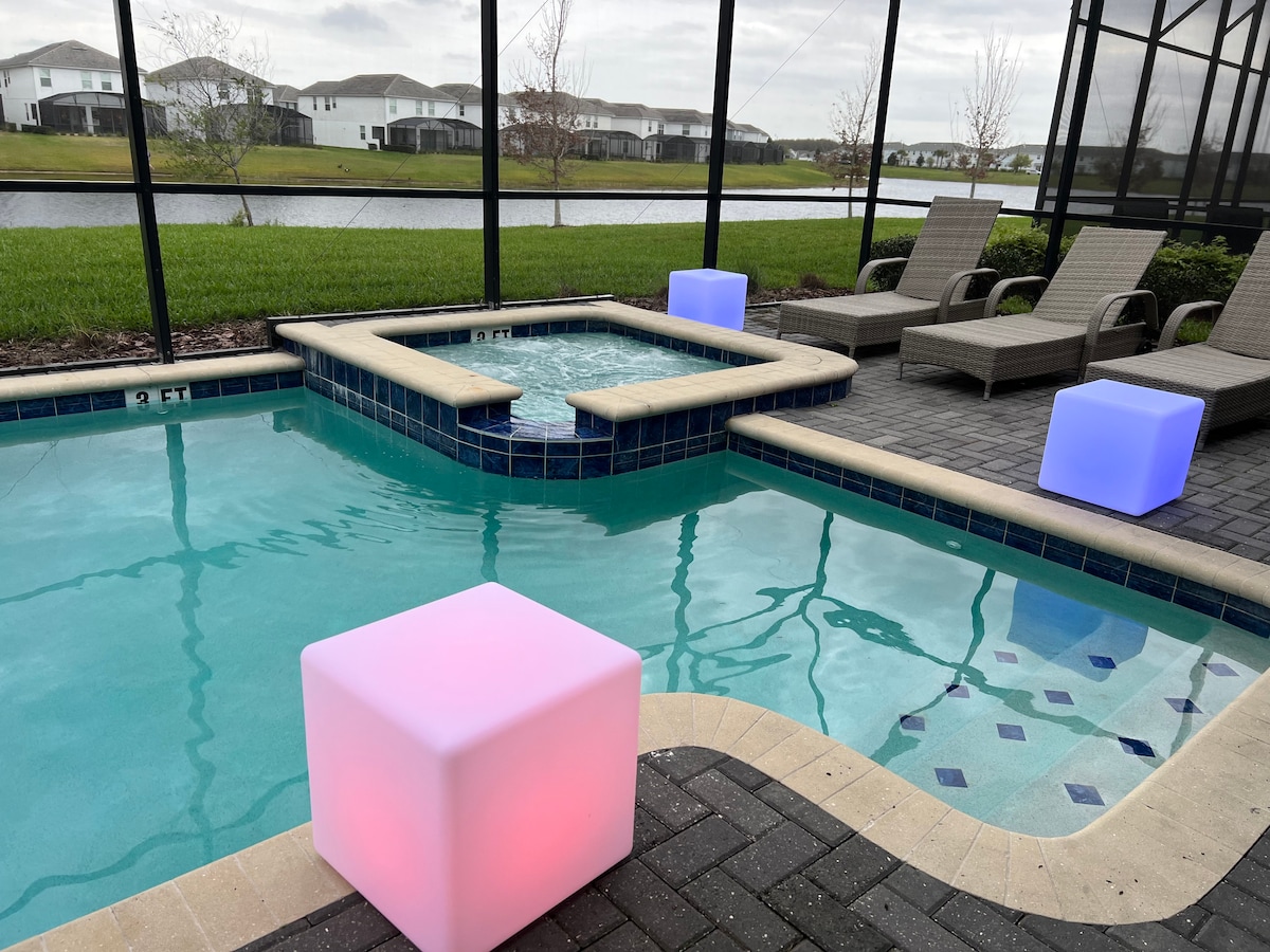 #925 Spa Privado/Piscina/Jogo 5BD/3BALakeFront Disney