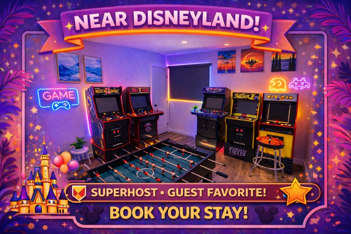C 2026 ARCADe Room • KING Bed • Mins to Disneyland