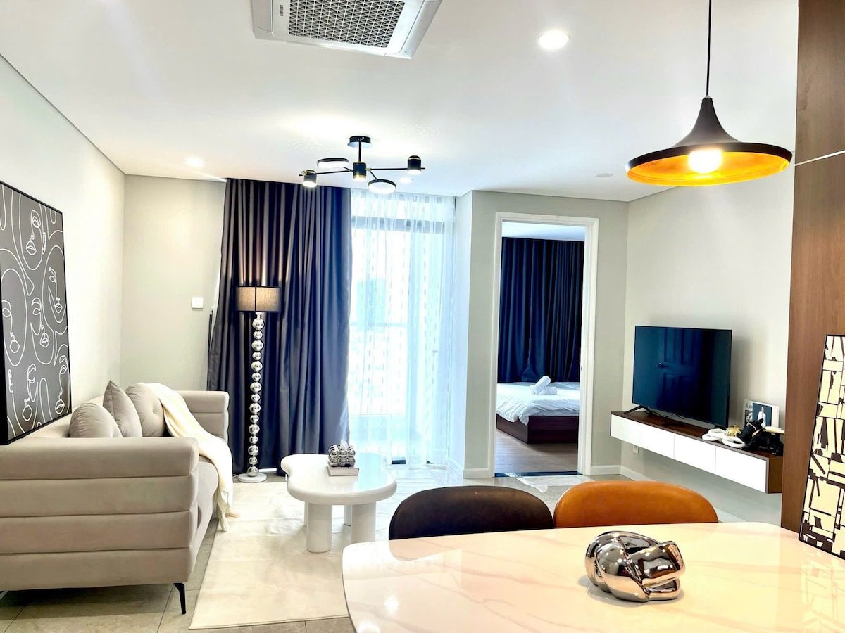 Promoção ✨ especial de 10% de desconto para estadias longas. Uma vida urbana requintada na Nguyen Luong Bang Commercial Road. O centro criativo da “Vida Profissional Híbrida” mundial, onde Viver – Trabalhar - Experimentar se integra harmoniosamente. - 2 quartos, 2 banheiros em um prédio NOVO. - Nossas comodidades totalmente mobiliadas oferecem tudo o que você precisa. Você pode relaxar e descontrair confortavelmente com uma decoração moderna e uma atmosfera acolhedora. - 1,4 km para SECC. - 1,7 km até o Shopping Crescent. - 8,3 km para o Mercado Ben Thanh.