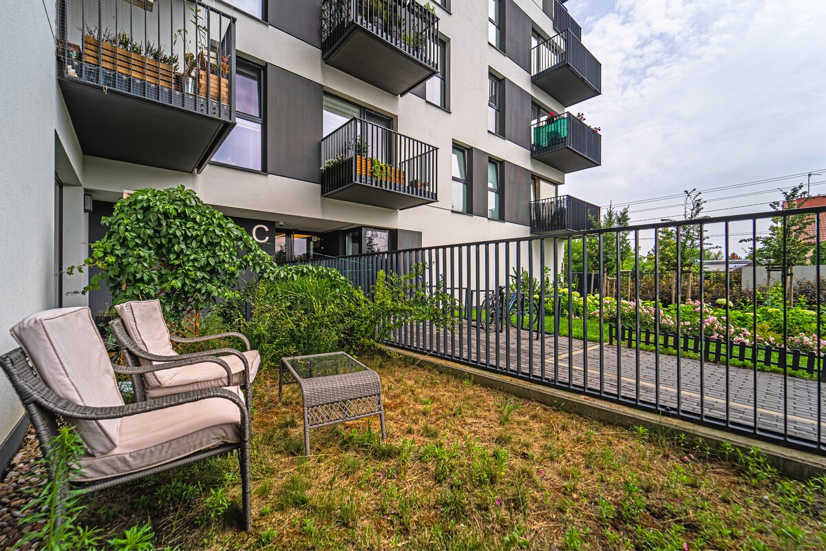 Apartamento moderno com terraço privativo e jacuzzi (até 40°C). 🫧 O lugar perfeito para casais, para relaxar na cidade ou trabalhar remotamente. * Banheira quente privativa * Terraço de 30m² com espreguiçadeiras * Academia e sauna na área comum * Smart TV 70" e PS4 * Estacionamento gratuito na garagem subterrânea * Cozinha completa e Wi-Fi forte Em uma área verde, perto do Lago Czerniakowskie, Praia Zawady, Reserva Morysin Observação: - Proibido animais de estimação, proibido fumar no apartamento e proibido festas.