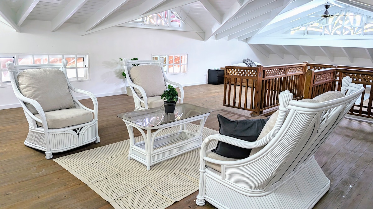 Descubra um pedaço do paraíso em nossa vila à beira-mar em Las Terrenas, Samaná. Situada acima de um riacho sereno que flui abaixo, esta deslumbrante vila de madeira oferece uma mistura harmoniosa de natureza e conforto. Acomodando até seis hóspedes, a vila dispõe de 3 quartos espaçosos com 3 banheiros completos e um meio banheiro adicional para sua conveniência. Desfrute de vistas deslumbrantes para o mar em toda a casa, relaxe ao som do riacho e mergulhe na paisagem tropical!