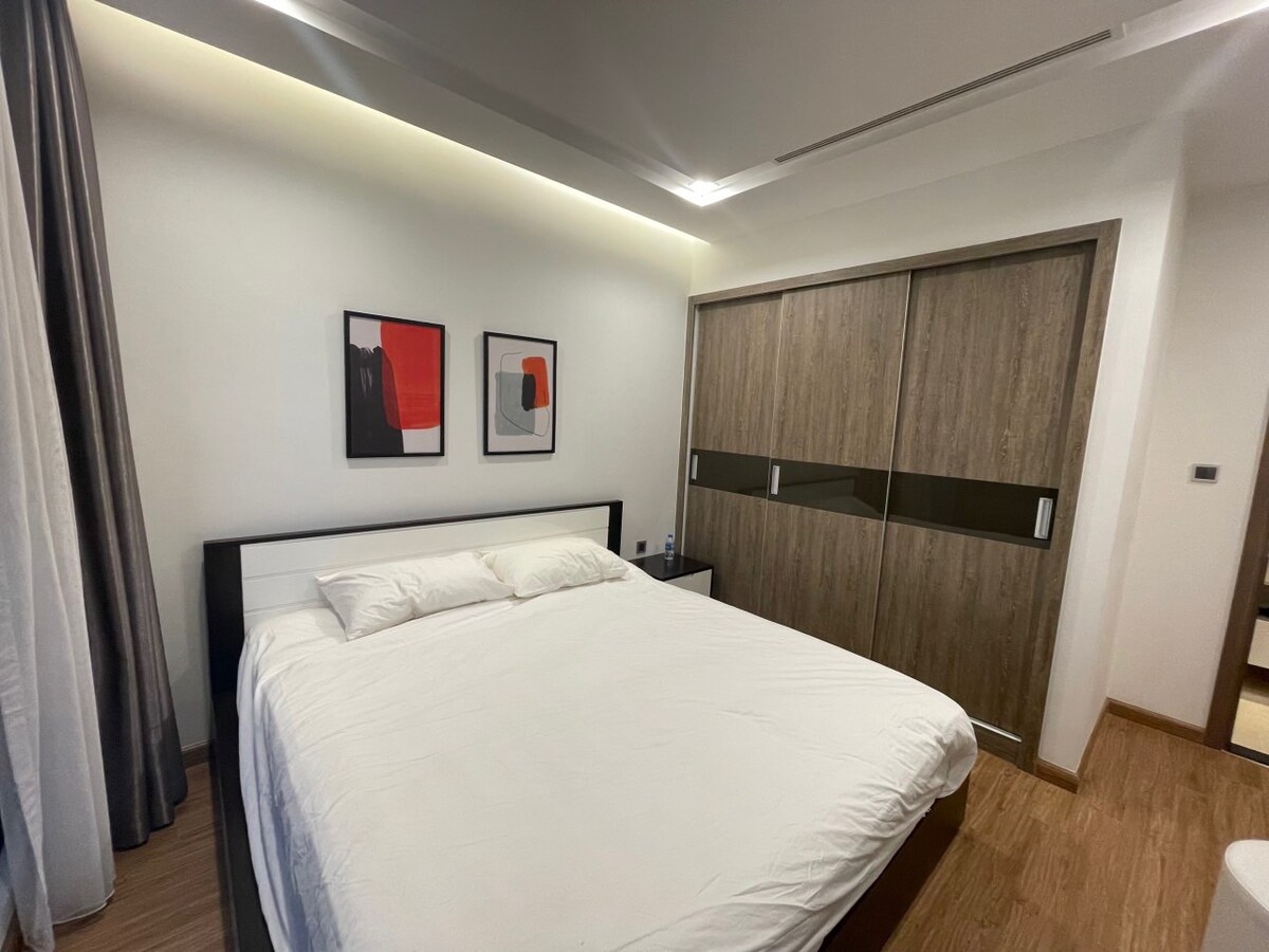 Căn hộ 2 phòng ngủ cao cấp nằm trên tầng cao của Vinhomes Metropolis, Ba Đình. Không gian được thiết kế tinh tế với gam màu hiện đại, cửa sổ lớn đón ánh sáng tự nhiên và tầm nhìn thành phố. Căn hộ được trang bị đầy đủ tiện nghi với phòng ngủ thoải mái, khu vực sinh hoạt ấm cúng, bàn làm việc, bếp đầy đủ tiện nghi, máy giặt sấy riêng và WiFi mạnh. Đây là lựa chọn lý tưởng cho khách công tác, gia đình hoặc lưu trú dài hạn tìm kiếm sự thoải mái, riêng tư và vị trí trung tâm Hà Nội.