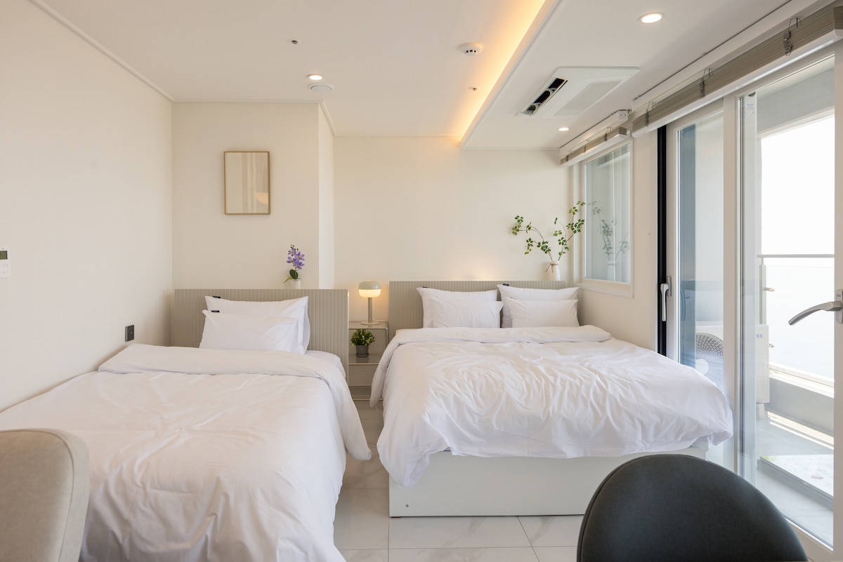 Terceiro andar • Família, amigos, casais em Haeundae • Descanso tranquilo • Premium • Roupas de cama de ganso • 2 quartos • Melhor localização • Sensação de privacidade