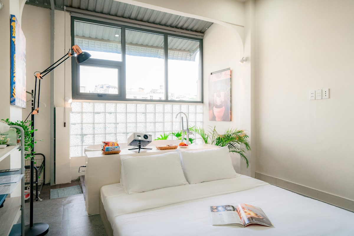 Nosso estúdio oferece uma base confortável e conveniente para sua estadia na cidade. Ele está localizado a poucos passos de atrações turísticas populares, como o Mercado Ben Thanh, a área de Bui Vien, a rua de pedestres Nguyen Hue e muitas outras. ✯ Localização central e 5 minutos para o MRT ✯ Acesso AO elevador ✯ Check-in e checkout autônomos. Atendimento para check-in tarde da noite. ✯ Varanda espaçosa voltada para a frente ✯ 40m2 - Cama queen size - banheiro privativo ✯ Smart TV com Netflix ✯ Ar-condicionado, micro-ondas, uma cozinha e geladeira disponíveis