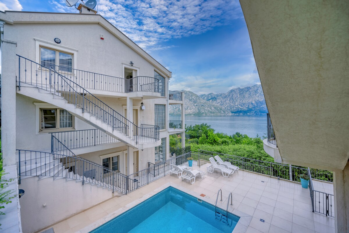 Villa Aqua Vita is a stunning stone villa, nestled between tall mountains and situated directly on the sea-front of the Kotor Fjord. Outstanding location. The interior is modern with optimal facilities both for short stays and remote working. Centrally heated/air-conditioned. There are two suites, each has bed & bathrooms on one level and work and media den on upper level. Centrally air-conditioned. Home Cinema. Jacuzzi. Bang & Olufsen audio. Private boat docking. High-speed WiFi mesh.