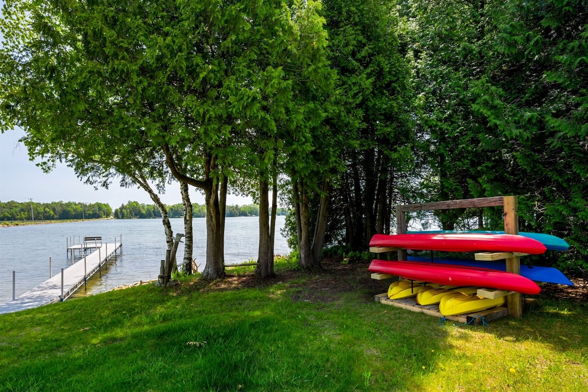 Bem-vindo ao Rocky Shores Retreat — uma clássica casa de campo à beira-mar em Door County, com 55 metros de costa privativa na Baía de Little Sturgeon. Saia de caiaque direto da propriedade, reúna-se ao redor da fogueira à beira da baía e prepare refeições em família em uma cozinha que os hóspedes não param de elogiar. O verão significa dias no lago e fogueiras ao pôr do sol; o outono traz uma luz dourada na baía, noites aconchegantes junto à lareira e o Condado de Door em sua forma mais bela. Com um beliche independente que as crianças adoram, espaço para até 10 pessoas e um ambiente tranquilo…