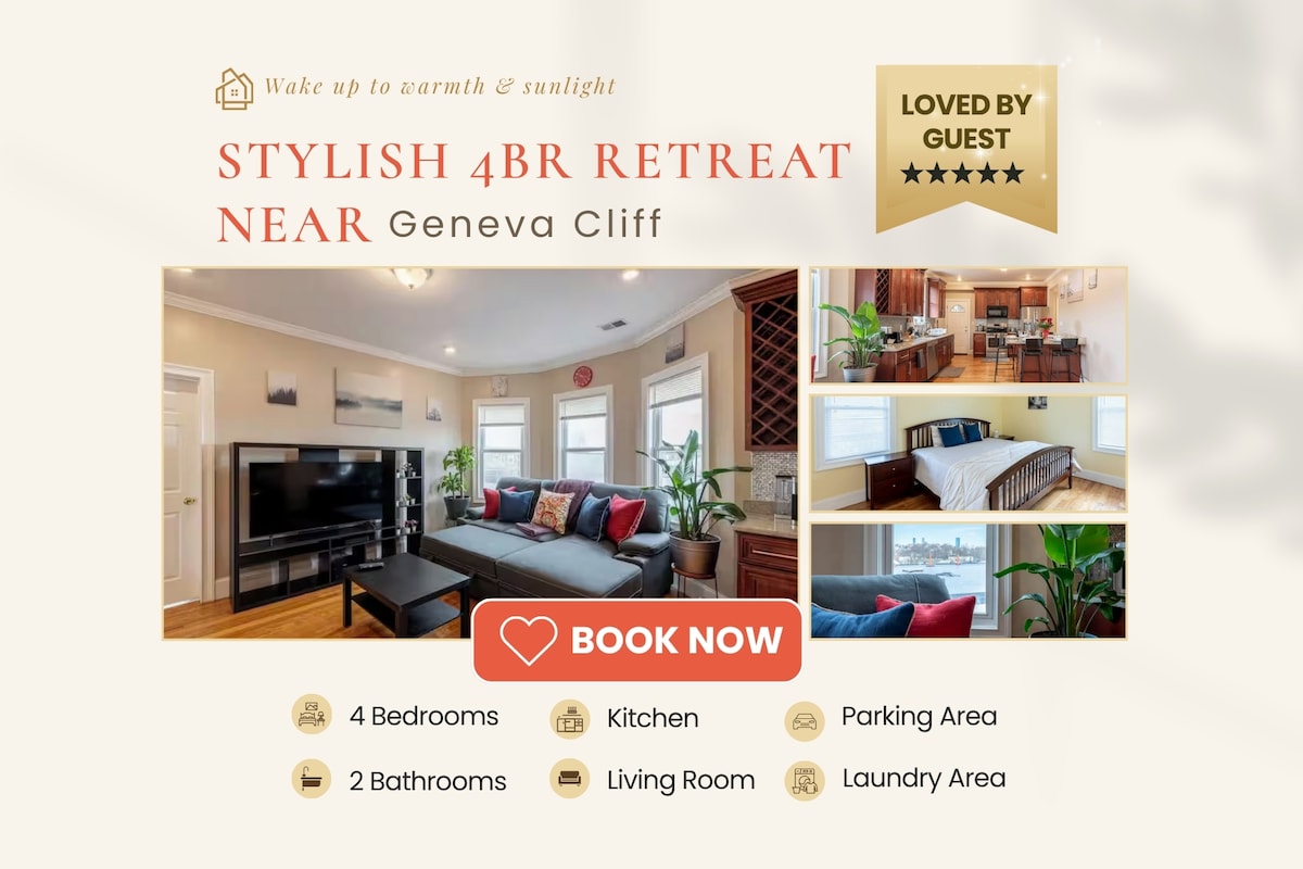 90/3 - 4BR Dorchester | Elegante perto de Geneva Cliff