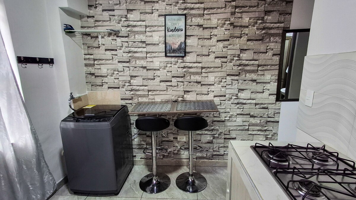 Perto de 3 avenidas principais, transporte público a meio quarteirão de distância, área central, a 15 minutos de Santa Rosa de Cabal ou Pereira. - Apartamento estúdio acolhedor com entrada separada. - Estacionamento para motocicletas - Perto de estacionamento público (carro). - Cama de 1,20 m - Espaço de trabalho -Cozinha (panela elétrica de arroz, máquina de waffle, geladeira, entre outros itens). A menos de dois quarteirões ao seu redor você encontrará: bares, cafés e supermercados (Ara, D1, Super inter). Em 5 minutos você vai encontrar o shopping center.