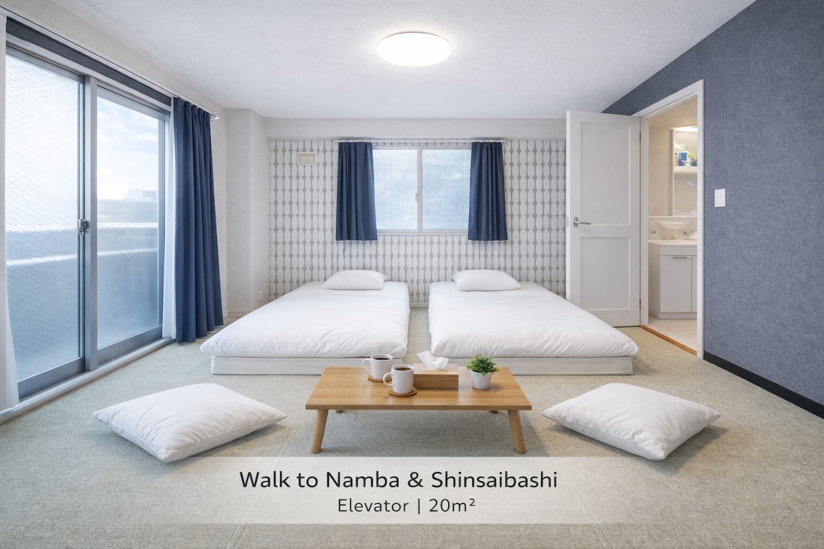[NEW OPEN] [Airport Direct] [Namba Area] A uma curta distância de [Namba], [Nipponbashi], [Dotonbori], [Denden Town], [Kuromon Market] e [Shinsaibashi] (dentro de 5 a 10 min a pé) Você pode ir facilmente para [Quioto], [Kobe] e Nara a partir da estação perto da acomodação! 2 cama de solteiro! ★Se não houver espaço na data que você deseja, entre em contato conosco e recomendaremos outra acomodação. ★[Aeroporto/USJ pick-up/send] [Osaka, Quioto, Wakayama 1 dia tour] disponível ★Aluguer de bicicletas disponível