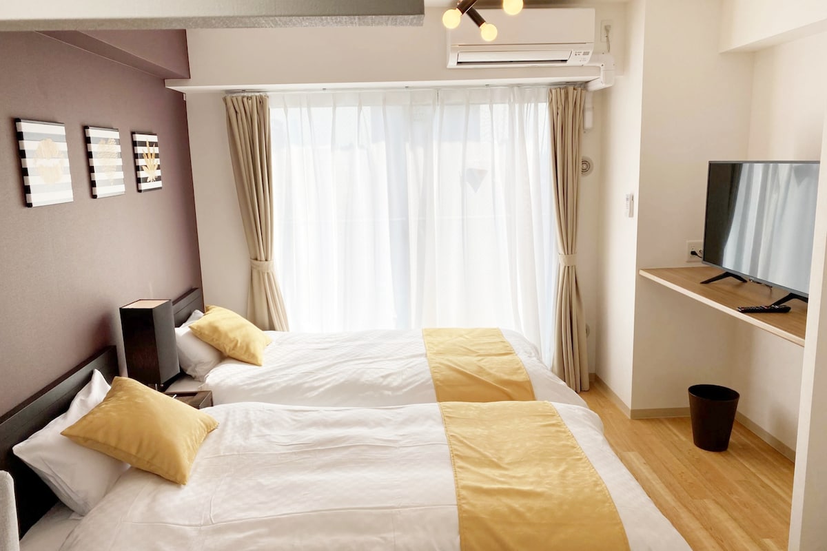 Estúdio com duas camas de solteiro, Dendentown 5 min, Nipponbashi