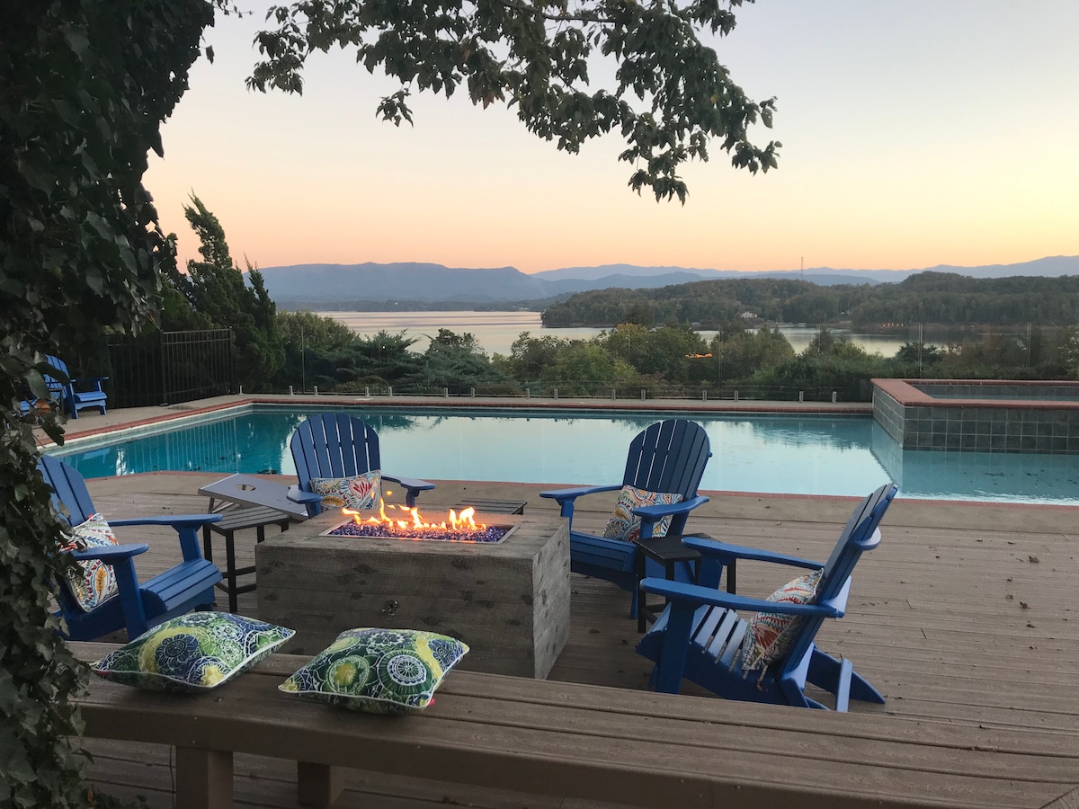 Cabana à beira do lago, com vista majestosa para a Smokey Mtn. *