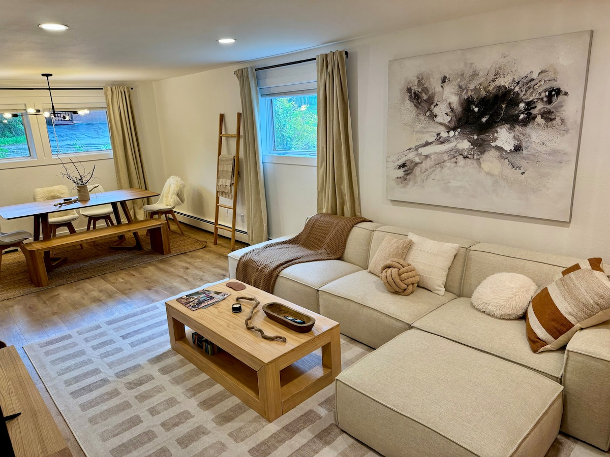 Este apartamento moderno e recém-atualizado de um quarto está aninhado em um beco sem saída tranquilo no coração da pitoresca Fairview, a poucos minutos do centro de Anchorage. Com todos os confortos de sua própria casa, você terá amplo espaço para relaxar e o acampamento base perfeito para suas aventuras no Alasca. As comodidades incluem ar condicionado no quarto, cafeteira, máquina de lavar e secar roupa gratuitas, internet de alta velocidade, uma TV inteligente com recursos Netflix/Hulu, estacionamento privativo atrás do edifício e um espaço de entretenimento ao ar livre convidativo.