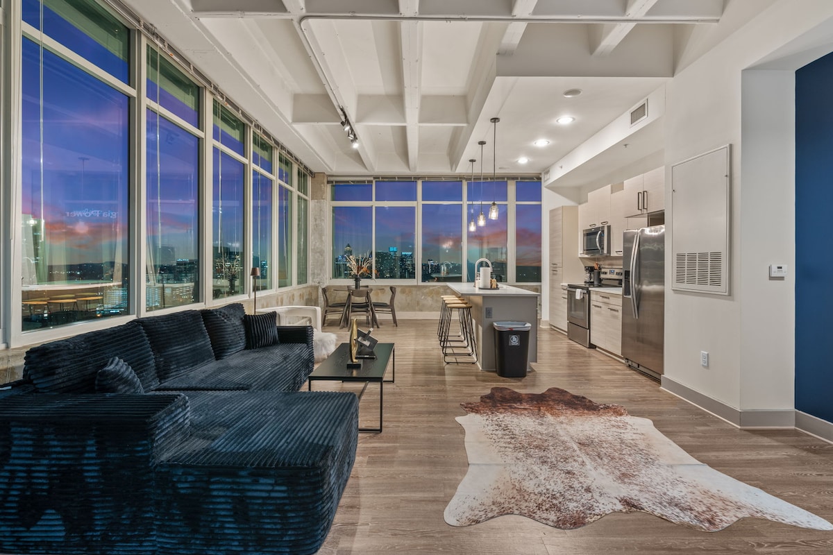 Eleve sua estadia em Atlanta em nossa deslumbrante cobertura, onde o design moderno encontra o charme da cidade. Aproveite as vistas deslumbrantes do horizonte pelas janelas do chão ao teto e relaxe em um espaço com estilo, conforto e tranquilidade. Ideal para viagens de fim de semana, estadias prolongadas ou para celebrar os melhores momentos da vida. Com os melhores restaurantes, vida noturna e as principais atrações a poucos passos de distância, você estará perfeitamente posicionado para explorar o melhor da cidade de uma forma inesquecível.