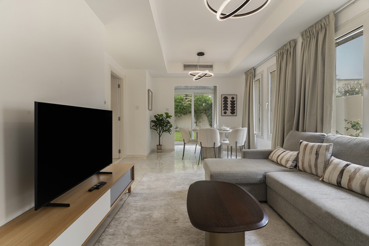 Bem-vindo ao LUX | The Serene Springs Villa 3. Uma vila moderna de dois quartos projetada para uma vida descontraída, com interiores espaçosos que fluem naturalmente de um quarto para outro. Lá fora, um ambiente sereno espera por você, ideal para relaxar ou se reunir com amigos e familiares. Um bairro tranquilo cercado por vegetação e lagos. A apenas 15 minutos da Marina de Dubai, JBR, Palm Jumeirah e Bluewaters. Conforto e conveniência esperam por você, oferecendo um retiro tranquilo, mantendo tudo o que você precisa ao seu alcance.