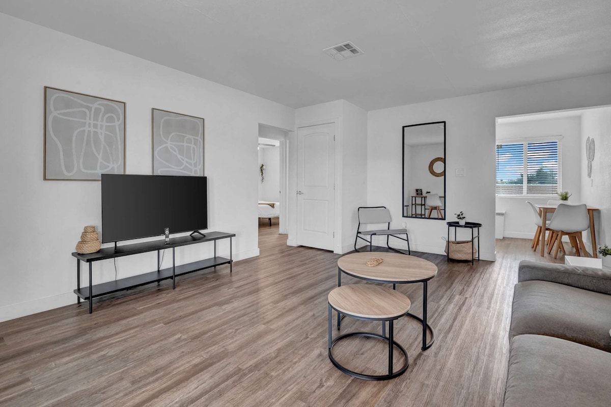Bem-vindo ao nosso apartamento de 1 cama e 1 banheiro, no coração do centro de Phoenix! Nosso apartamento é perfeito para quem viaja sozinho ou em casal que procura explorar a cidade vibrante. Desfrute da nossa elegante sala de estar, cozinha totalmente equipada e quarto confortável. Você estará em um bairro vibrante e movimentado, ao lado de todos os melhores restaurantes, bares e atrações que Phoenix tem a oferecer. Ao lado de Roosevelt Row Cozinha ✔ totalmente equipada ✔ Quarto confortável com cama queen size Mesa de✔ escritório ✔ Wi-Fi Estacionamento ✔ gratuito em garagem