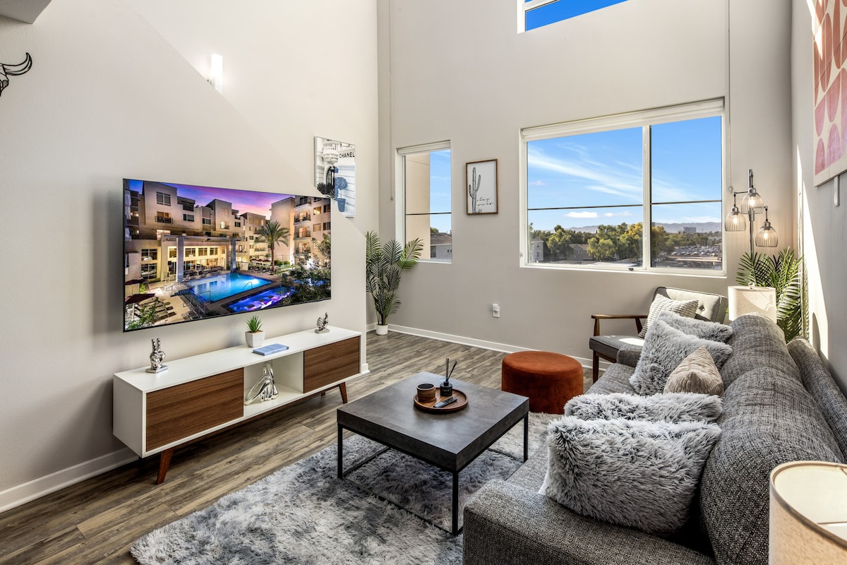 -PHX Sky Harbor Airport: 3 minutos -Tempe: 6 minutos -DT Phoenix: 11 minutos -Old-town Scottsdale: 15 minutos Com localização central no coração do Vale, este condomínio moderno oferece uma escapadela luxuosa com janelas do chão ao teto de 270 graus. Experimente o deslumbrante pôr do sol do Arizona e observe os aviões deslizarem pelo céu. Lindamente mobiliada com um design de conceito aberto, esta propriedade possui uma cozinha totalmente equipada, um quarto sereno com roupa de cama macia e comodidades de luxo para melhorar sua estadia