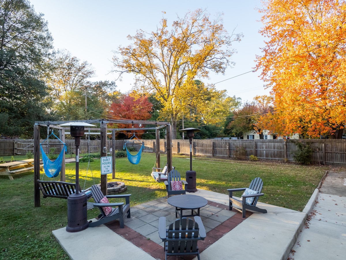 Bem-vindo à nossa moderna casa de tijolos de 1925 🏡 — onde o charme histórico encontra o estilo ousado e de design. Perfeito para grupos, famílias ou amigos que querem conforto, criatividade e DIVERSÃO. 📍 A poucos passos das cervejarias + restaurantes de Scott's Addition 🍻 🎬 Cinema ao ar livre sob as estrelas 🌌 🏓 Quadra de pickleball de tamanho regulamentar para partidas épicas 🧘 Estúdio de ioga + fitness privado com tapetes, blocos e pesos livres 🔥 Fogueira no quintal + balanços para noites aconchegantes 🚗 Estacionamento para até 6–8 carros