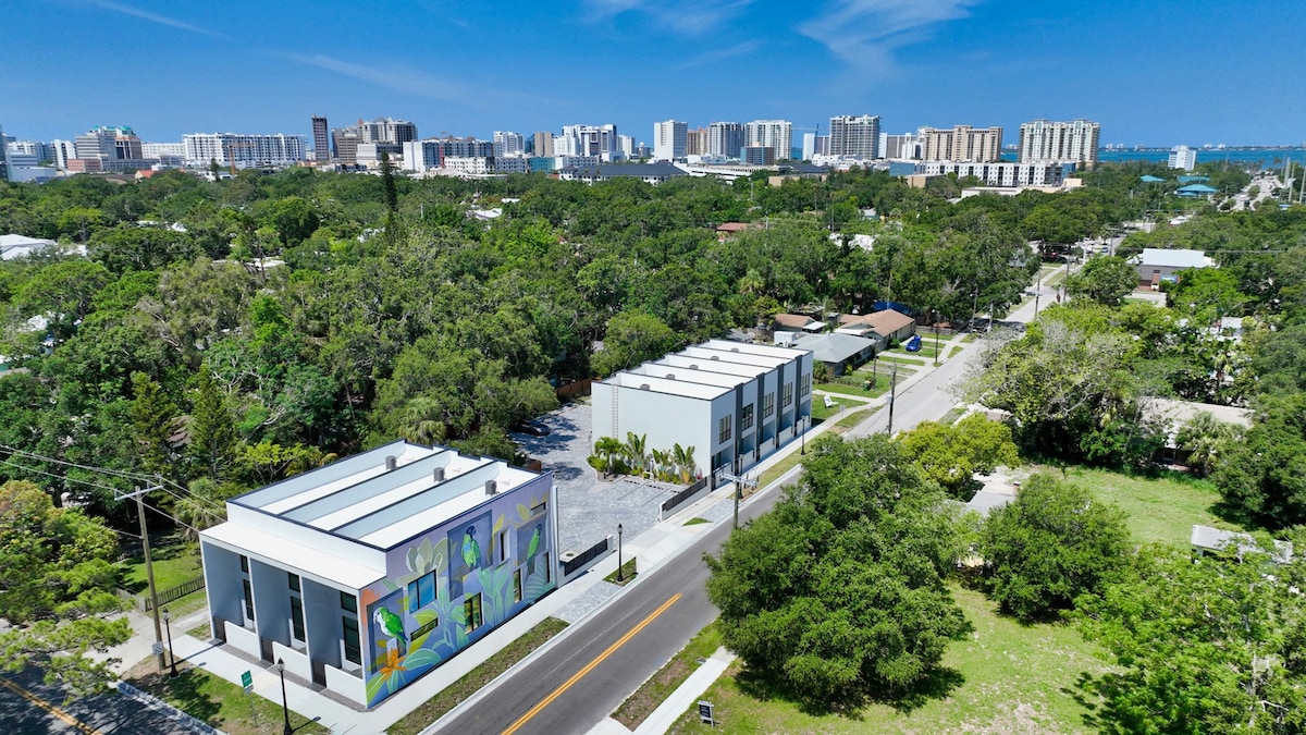 Retro circus romance & mid-century style near downtown Sarasota. ✅ Main Street, Downtown Sarasota 2 miles - 6 mins ✅ St. Armand’s Circle: 4.5 miles - 15 mins ✅ Lido Key Beach 5 miles - 15 mins ✅ Siesta Key Beach: 6 miles - 18 mins ✅ Downtown Bradenton 12 miles - 25 mins ✅ Bradenton Beach 14 miles - 30 mins ✅ Casey Key 16 miles - 30 mins ✅ Airport: Sarasota–Bradenton International Airport 6 miles - 12 minutes