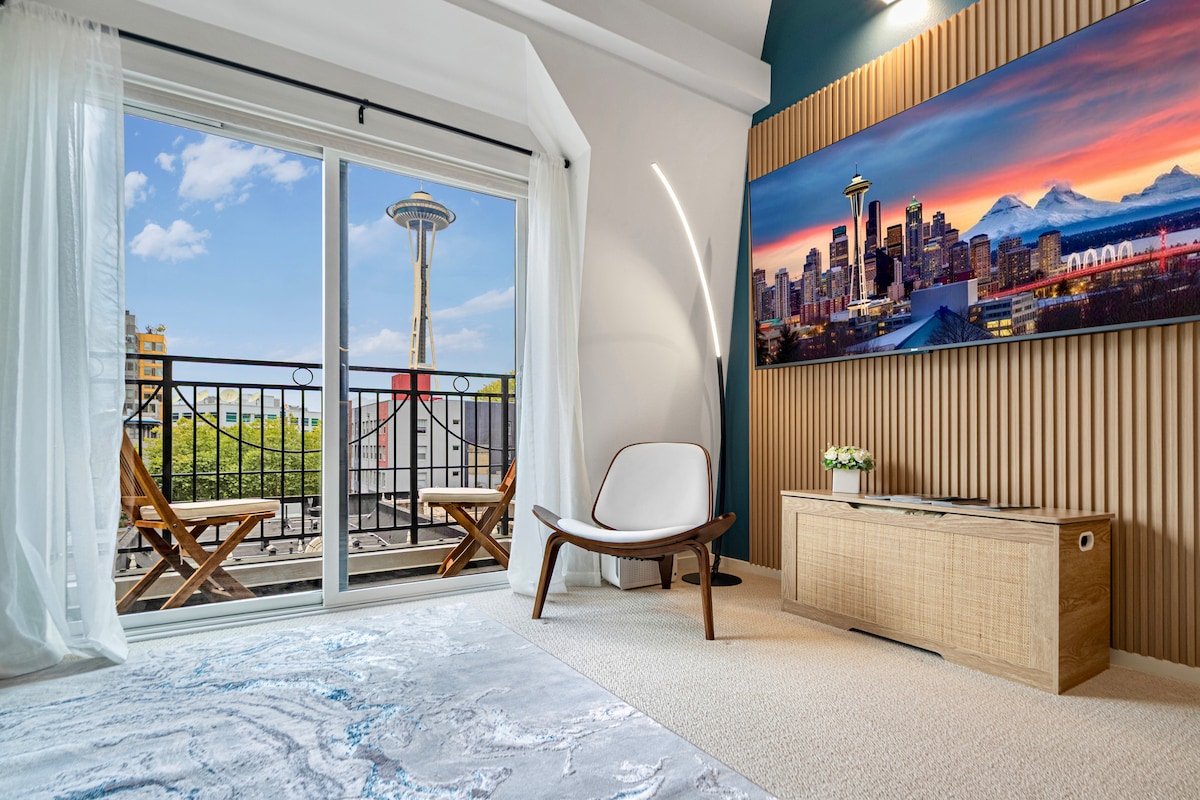Cobertura de designer com vista para a Space Needle e estacionamento