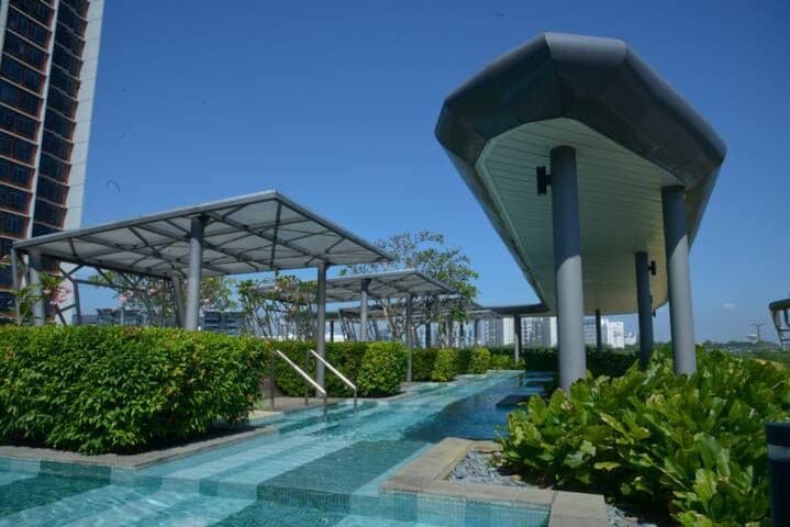 Minha unidade de estúdio totalmente mobiliada de 510 pés quadrados está no último andar equipado com sistema de casa inteligente. Você pode visualizar cyberjaya e putrajaya da minha unidade. Desconto adicional para reservas de 2 noites ou mais. Lugares próximos: - a uma curta distância a pé da Praça Shaftsbury para alimentos, bancos e mantimentos. - 6 km até a estação ERL Putrajaya/Cyberjaya. - 2,4 km até o Shopping D'Pulze. - 11 km do IOI City Mall - 35 km para KL. - 26 km até KLIA. Comodidades adicionais: - Internet de banda larga de fibra ilimitada de 300 mbps - Netflix