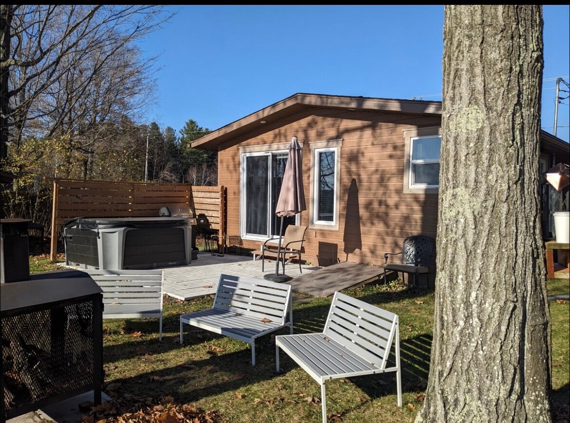 De style rustique et dans un boisé bien aménager pour la promenade paisible et près de grande ville , le tout a l'état de neuf et très bien entretenu et sommes de nature sociables et accueillant .Jamais deux réservations aux mêmes moments, spa disponible situé sur la galerie de la maison privé ouvert 24/24,discretion et tranquillité assuré! Une zone de transition en hivers est prévus .Aucune consommation de cigarettes au autre, émanant de la fumée est interdite .