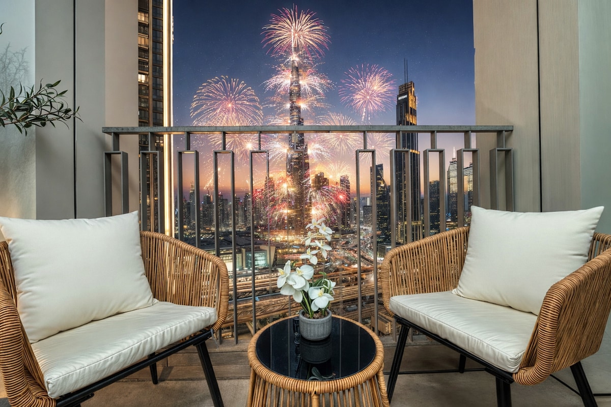 Estúdio com vista para o Burj Khalifa |Fogos de artifício!