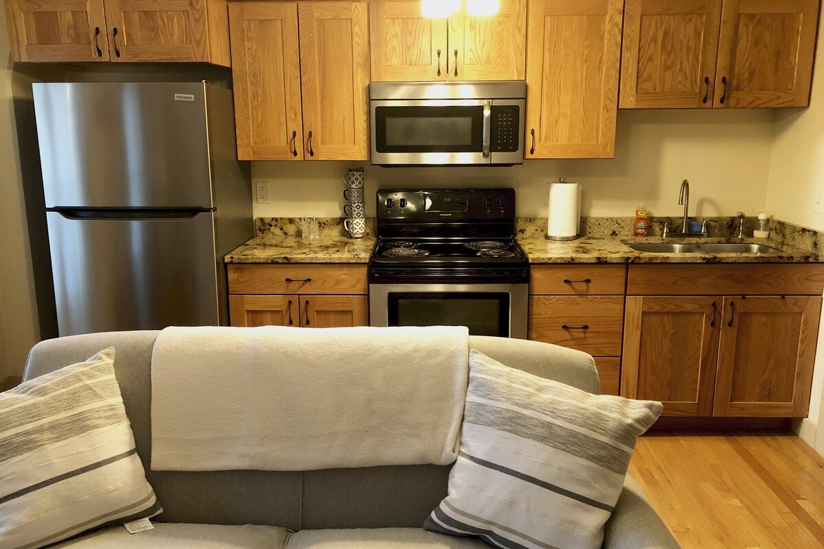 Desfrute do charme de Dubuque a partir deste apartamento limpo e confortável de 1 quarto localizado no coração do Millwork District. Perfeito para viajantes individuais ou casais, esta unidade no térreo coloca você a poucos passos de restaurantes, lojas e do mercado de agricultores sazonal (maio-outubro). Os hóspedes adoram a facilidade de locomoção, o check-in tranquilo e a atmosfera pacífica. Inclui cozinha completa, smart TV, mesa de escritório e banheiro privativo com banheira/chuveiro. Um ótimo custo-benefício em um edifício histórico no centro da cidade!