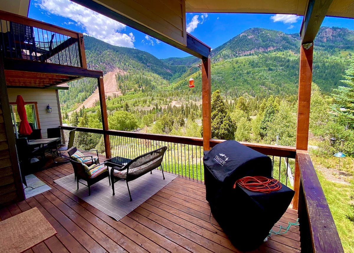 Esta aconchegante casa de montanha com 4 camas e 3 banheiros tem excelentes vistas para o Vale de Tabiona. É ótimo para relaxar e se divertir com 2 decks, churrasqueira, móveis de jantar exterior, lareira, ferraduras e internet Starlink. A cozinha de serviço completo tem uma ilha que acomoda 3 pessoas. A sala de jantar tem uma mesa para 8 pessoas. A sala de estar tem uma TV e amplos assentos. Você vai encontrar ótimas trilhas para andar/caminhar e pescar na área. Este é um ótimo destino de viagem para férias em família ou um local de trabalho remoto tranquilo.