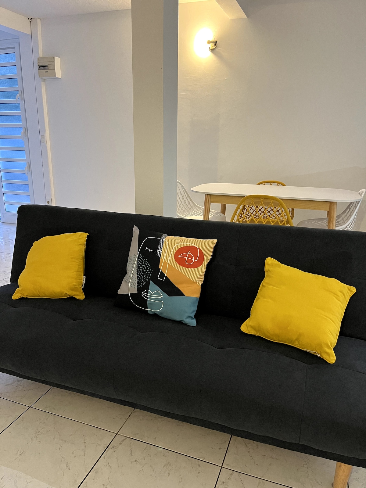 Idéalement situé au cœur de l'île, à proximité de l'aéroport, des plages, des centres commerciaux et des services. Ce charmant bungalow est le pied-à-terre parfait pour vos aventures en Martinique. Avec ses 22 m², il offre un espace accueillant et joliment décoré, doté de tout le confort moderne : - Chambre climatisée avec un lit confortable - Salle de bain privée - Cuisine tout équipée Profitez de votre café sur la terrasse, détendez-vous sur un transat, une soirée barbecue à la belle étoile.