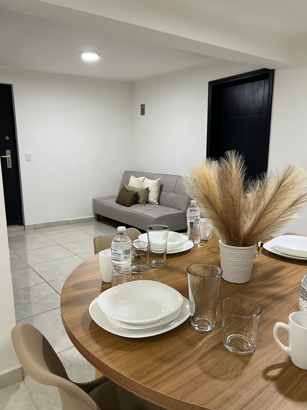 Quédate en un hermoso departamento con acabados de lujo en una excelente ubicación con todas las comodidades que buscas para disfrutar tu estancia. Contamos con: Recamara amplia con cama king size y tele smart Dos baños amplios con acabados de lujo Una cocina bien equipada Espacio de trabajo y home office Grande pantalla smart en la sala Un estilo moderno único en Durango y todo en una excelente ubicación a min del centro histórico y la plaza Paseo Durango. ¡Esperamos verlos pronto!