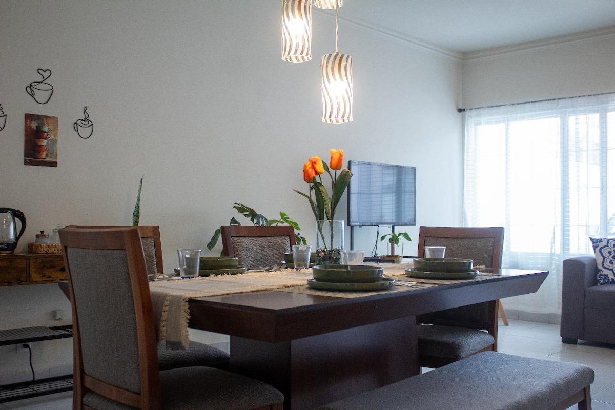 Relájate en este espacio tan tranquilo y elegante. Acogedor alojamiento entero de una recámara para dos personas. Cuenta con pantalla Smart y Netflix, Disney +, wifi, estacionamiento gratuito, agua caliente 24/7, utensilios de cocina, refrigerador, parrilla a gas, microondas, agua potable, dentro de un residencial privado con vigilancia las 24 horas. En el tercer piso en una de las zonas mejor ubicadas y conectadas de la ciudad. A un costado de supermercados, restaurantes y plazas comerciales.